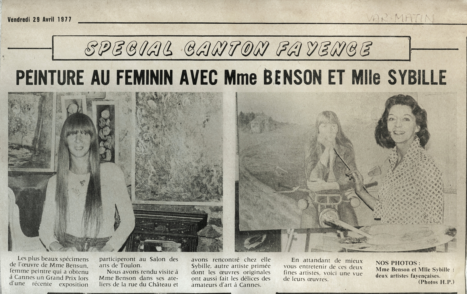 OUR PHOTOS: Mrs Benson and Miss Sybille two artists from Fayence.