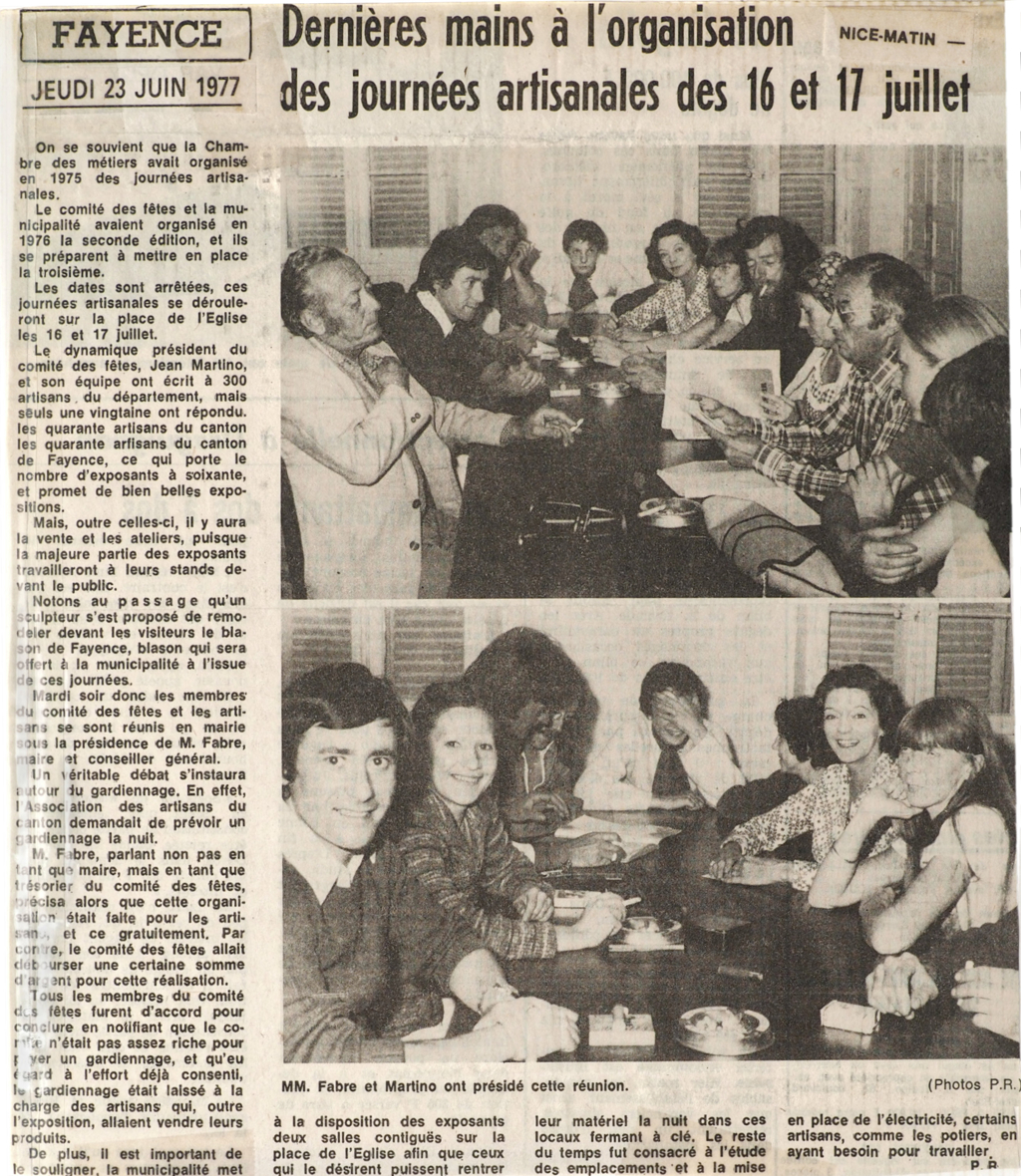 The dynamic president of the festival committee, Jean Martino, and his team wrote to 300 artisans of the province, but only about twenty responded. The forty artisans of the canton and forty artisans from Fayence, bringing the number of exhibitors to sixty. and promises some very fine exhibitions.