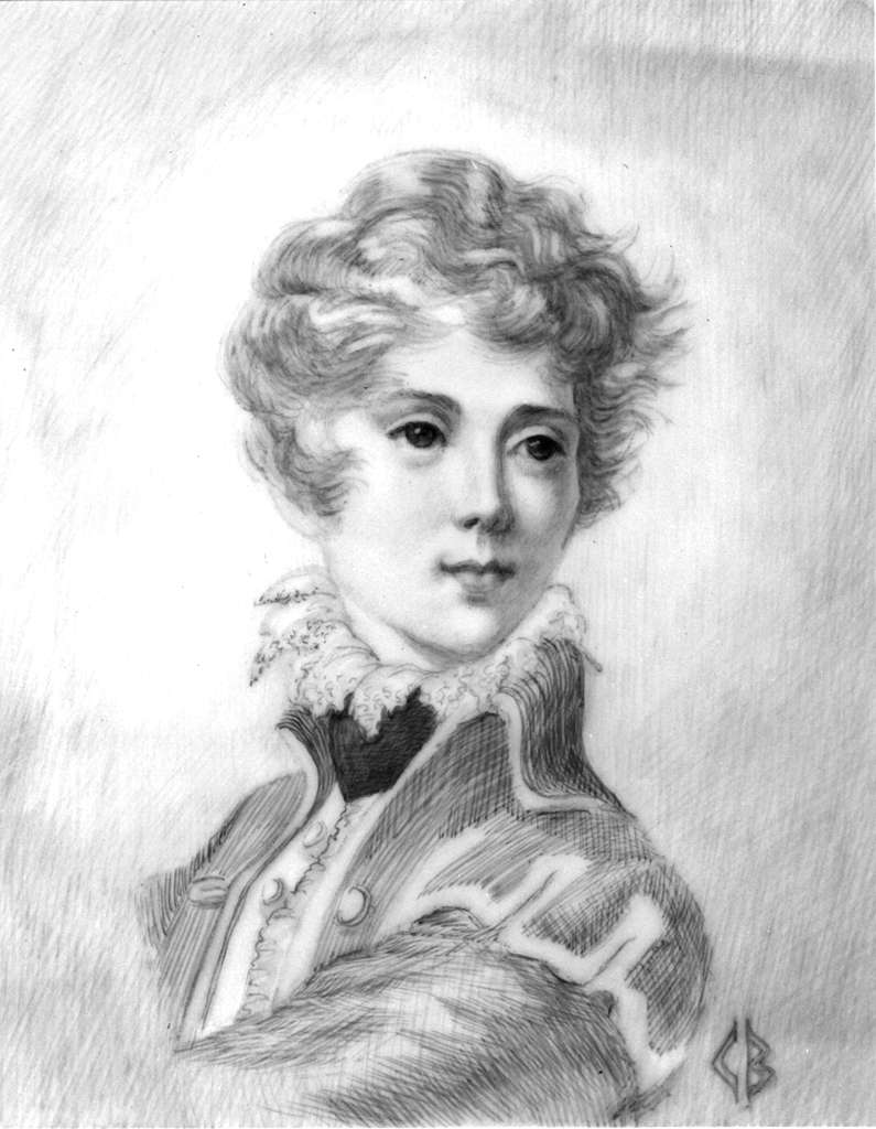 Lady Caroline Lamb was the first of four miniatures that Christine painted. The series were another of her attempts to generate income by branching out from her more traditional portrait painting. I also think she took it on as a personal challenge. The choice of subjects for her miniatures was inspired by a combination of her reading and looking for suitable people from the Regency period, the height of the miniaturists art. Lady Caroline Lamb was most well known for being the wife of the 2nd Viscount of Melbourne, William Lamb, who later went on to become Prime Minister of England. Perhaps more famously, she was also the muse and mistress of Lord Byron, the poet and writer. Her wild nature and scandalous behavior left their mark in history. You can read a good summary of her life on the Regency History blog but for a more detailed reading of her background and life, the first chapter of the Wives of the Prime Minister 1844-1906 is the best source. For more information about the affair with Lord Byron, the English History site has even more details, all fascinating reading.