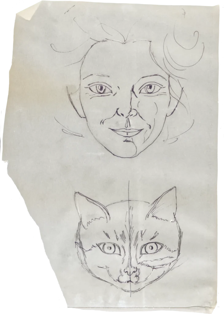 | June 17, 1977 | Work 6hrs “Recognition” Did a smashing day’s painting – change PCs eyes, and finish most of ‘my’ face in the hot afternoon – just didn’t finish my cat eyes. |