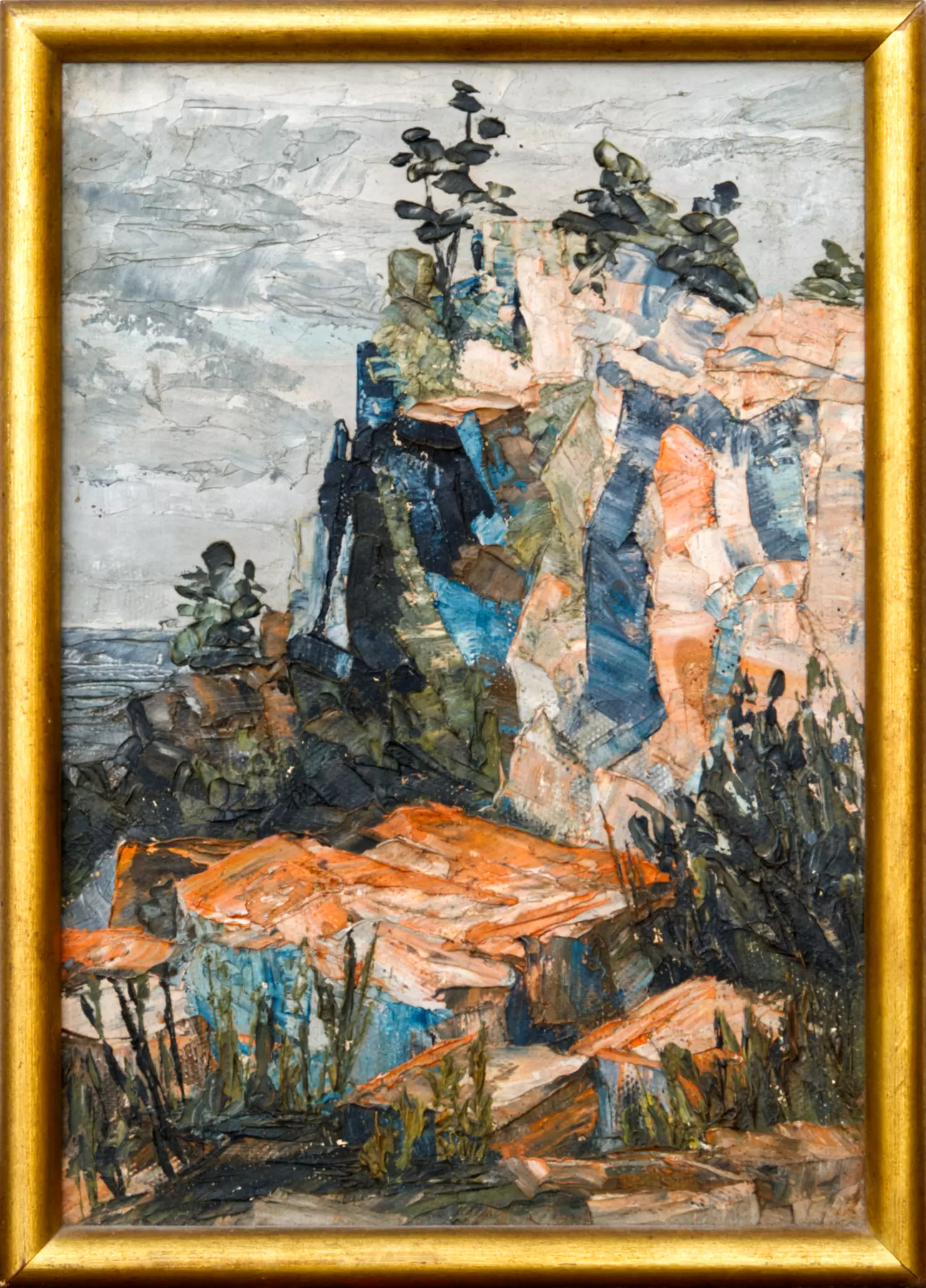 Palette knife painting of rocks near Bagnols-en-Forêt in Provence, France.