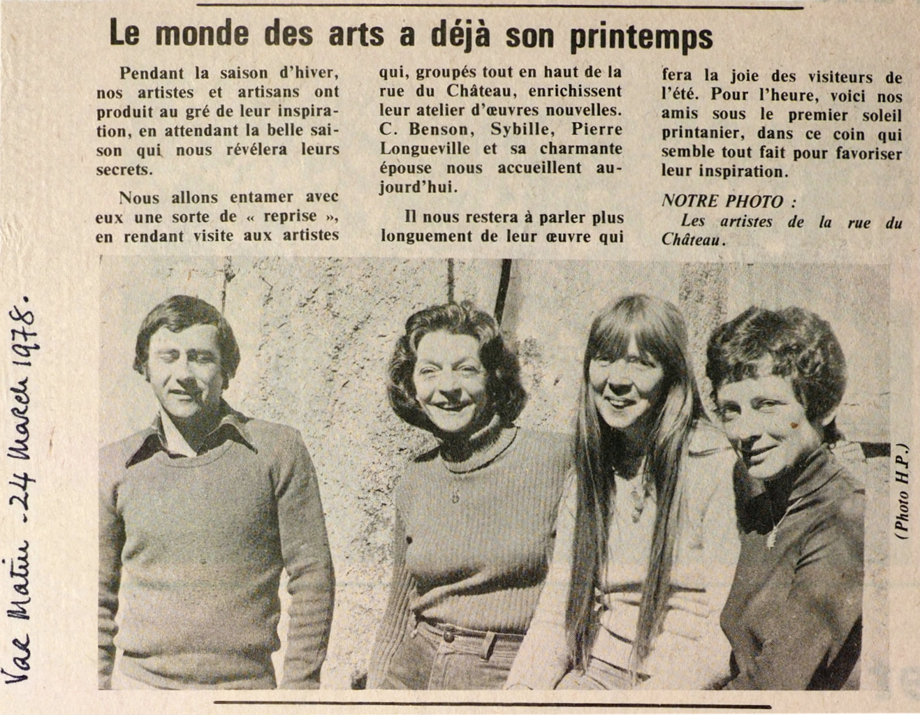 We are going to start a kind of “recovery” with them, visiting the artists who, grouped at the very top of the rue du Château, are enriching their studios with new works. C. Benson, Sybille, Pierre Longueville and his charming wife welcome us today.